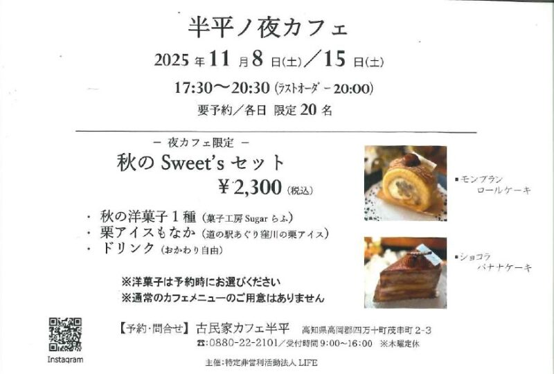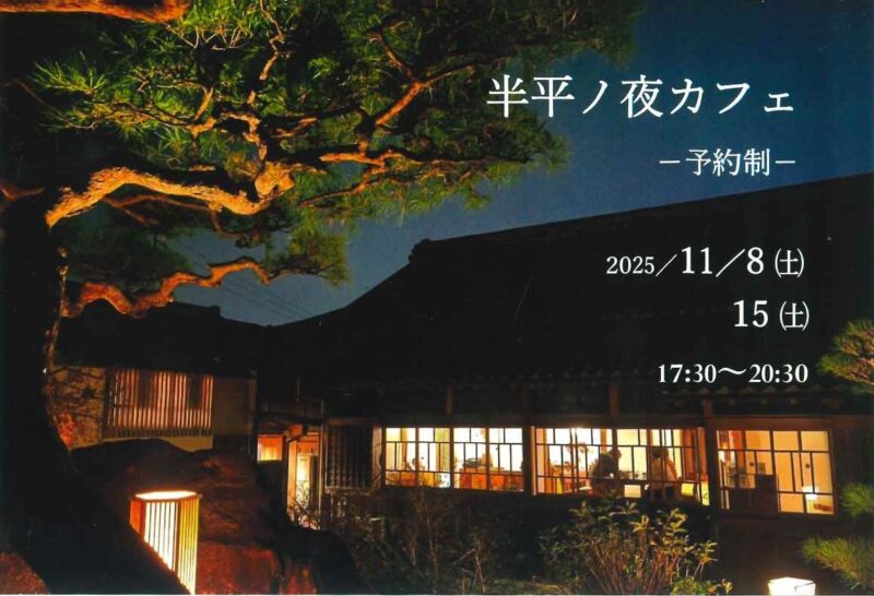 古民家カフェ半平にて夜カフェがあります!