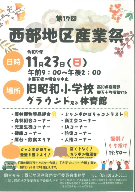 主催:西部地区産業祭実行委員会事務局 TEL (0880)28-5111