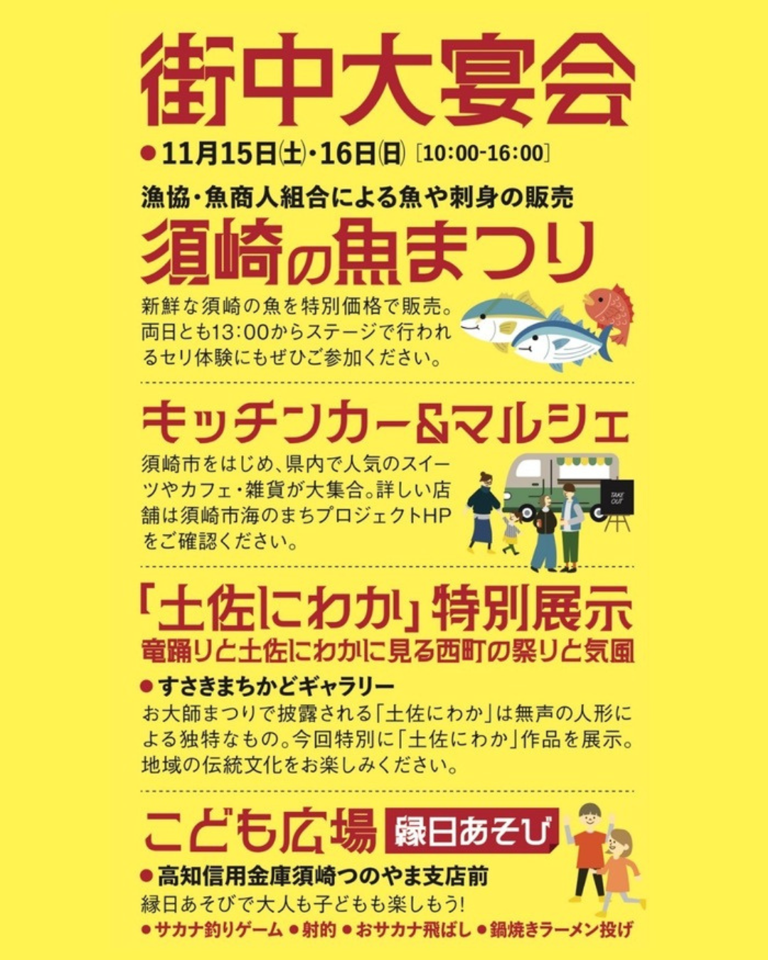 須崎市・イベント情報2025/11/14 【11/15-16】📣✨須崎の秋イベント最大級✨ 須﨑縁日商店街 サカナ文化祭 が開催! シェアする シェアする 詳細はこちら⇩ https://www.city.susaki.lg.jp/life/detail.php?hdnKey=5800 前へ ブログ一覧へ 次へ
