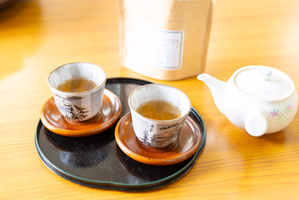 相性抜群の津野町自慢の釜ん茶とつるかめ焼き。