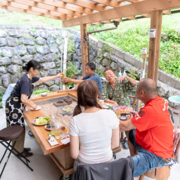 ②長寿の館でお腹と心が満たされるひとときを。冬の津野町で食べる囲炉裏飯と薪で焚いた五右衛門風呂