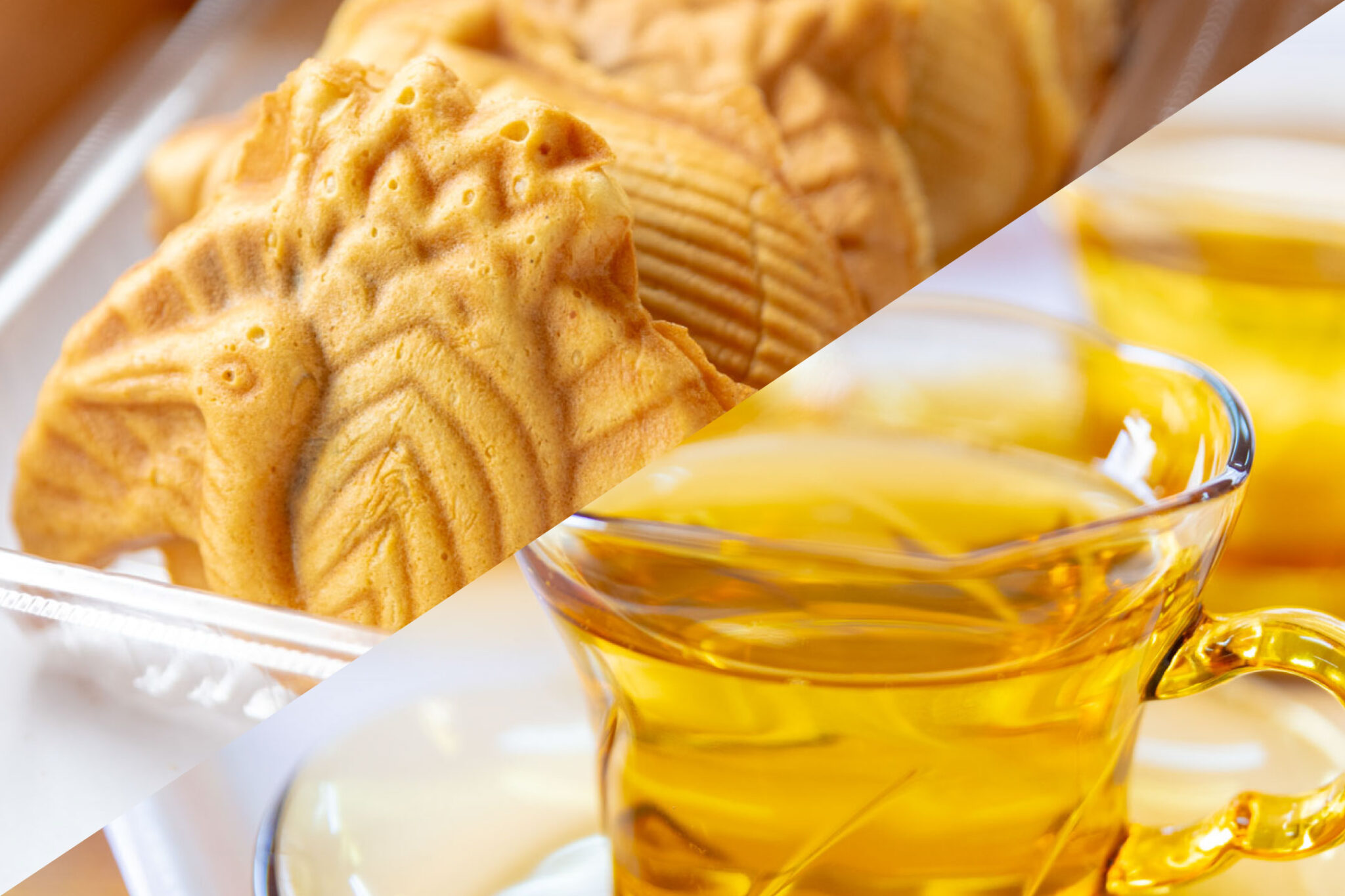 ①鶴は千年、亀は万年。精華で生まれた伝統の味。つるかめ焼と釜ん茶のお茶炒り体験。