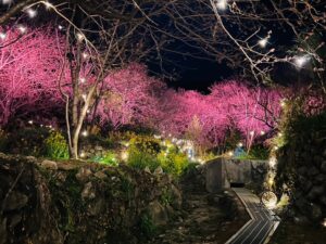 昼間とはまったく違う表情を見せる雪割り桜